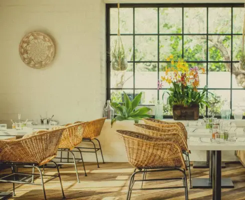 Restauracja Plant Food + Wine prowadzona przez szefa kuchni Matthew Kenneya, mieszcząca się w hotelu Four Seasons Los Angeles w Beverly Hills, serwuje piękne dania wegańskie w przestronnych i tętniących życiem wnętrzach. Usiądź przy jednym z uroczych stolików w bistro na pełnym roślin patio i delektuj się charakterystycznym dla restauracji tikką z awokado, które składa się z jogurtu curry, placka ziemniaczanego i świeżych ziół. Jeśli uda Ci się zaoszczędzić miejsce na deser, zapraszamy na ciasto czekoladowe z lodami pistacjowymi.