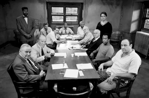 Harwood (drugi od prawej) wRemake Williama Friedkina z 1997 roku 12 gniewnych ludzi. Od lewej:Jack Lemmon, Hume Cronyn, Mykelti Williamson (na stojąco), Edward James Olmos, William L. Petersen, Courtney B. Vance (szef stołu), Ossie Davis, George C. Scott, Tony Danza (na stojąco), Armin Mueller-Stahl ( w okularach), Doriana Harewooda i Jamesa Gandolfiniego.Obrazy Getty’ego
