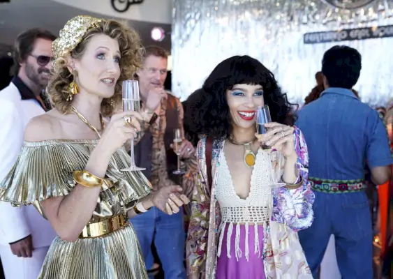 Wiedzieliśmy, że czwarty odcinek będzie bardzo wizualny, z kostiumami, makijażem i fryzurą. Dużo o tym rozmawialiśmy. Zadbałem o to, aby porozmawiać ze wszystkimi osobami osobistymi, aby żadna dwie aktorki nie miały takich samych odważnych cieni do powiek lub kwiatów na twarzy. Simone Siegl, [osobista wizażystka Laury Dern] i ja dużo razem pracowaliśmy nad kolorystyką. Tego samego brokatu użyliśmy zarówno na Amabelli, jak i Renacie. Pracowałam z Alix [Friedberg], projektantką kostiumów, wiedziałam, że mają na sobie tę samą sukienkę. Chcieliśmy mieć pewność, że będzie to wyglądać spójnie. Renata najwyraźniej zatrudniłaby ekipę, która przyszłaby i przygotowała ich oboje.