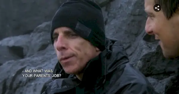 - Kiedy Ben i Niedźwiedź odpychają się w dół urwiska, trzymani jedynie za węzeł zawiązany przez Bena Stillera, który niedawno nauczył się wiązać węzeł, Niedźwiedź mówi, że Ben nigdy wcześniej tego nie odpychał, więc spróbuj i spraw, by było to trochę zabawne . Dzisiaj oparłem się na tym, BearGrylls i mamy zupełnie inną definicję słowa zabawa. Poza tym BearGrylls jest cholernie szalony.